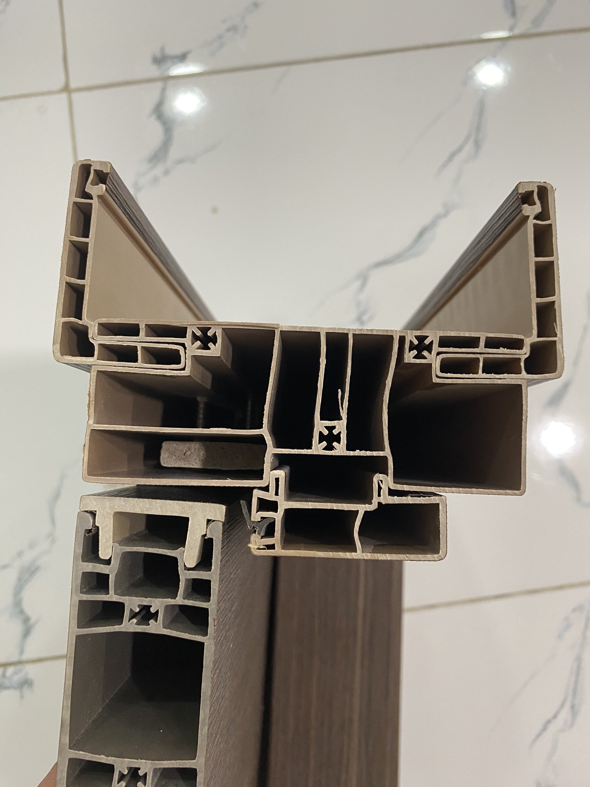 Cửa nhựa gỗ composite sử dụng phương pháp ép đùn tiên tiến, tạo ra những cách cửa có có độ dày đồng đều, chắc chắn và bền đẹp theo thời gian.