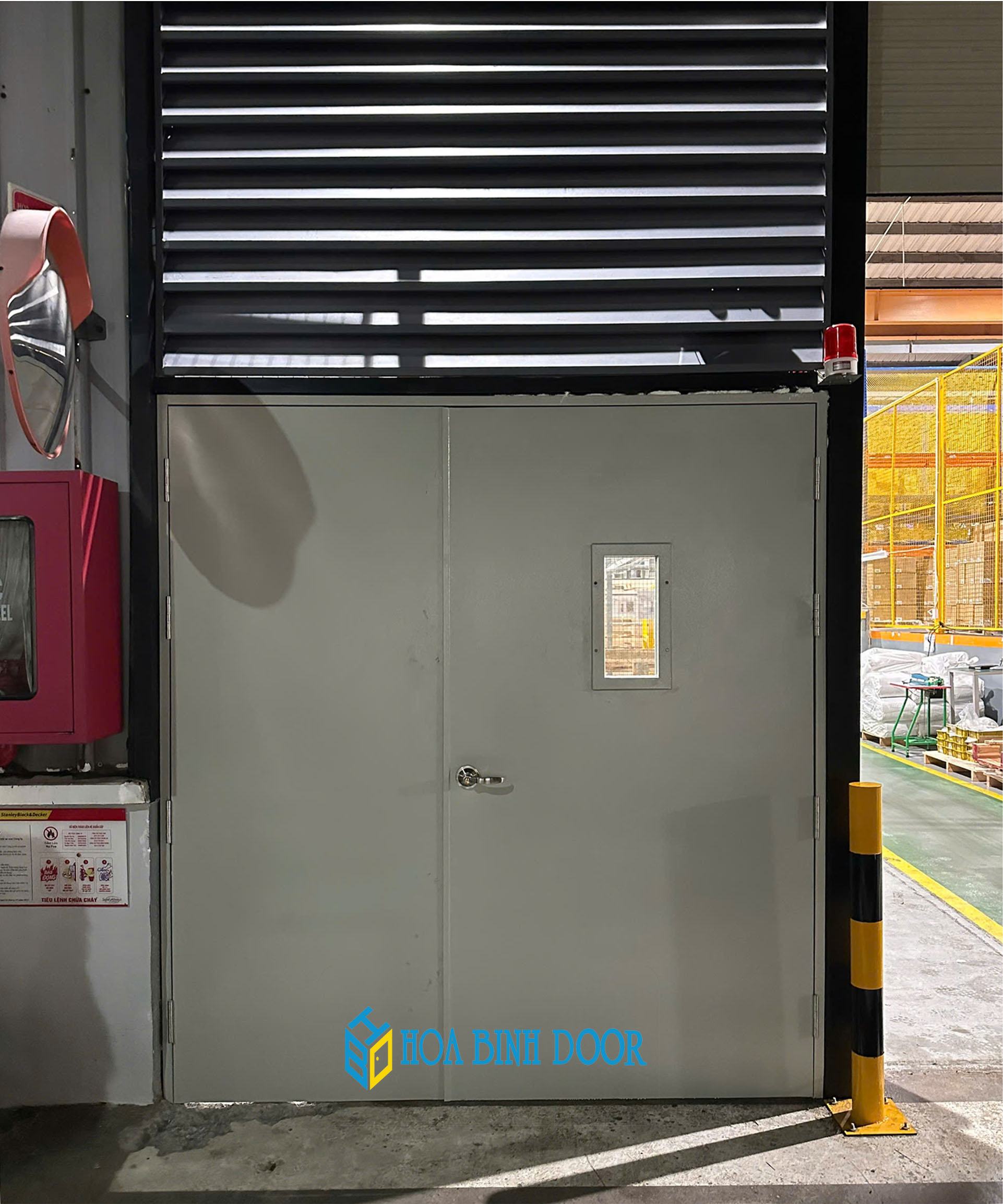 Cửa làm bằng thép dày được sơn tĩnh điện, Kết hợp với lõi làm từ các vật liệu chống cháy công nghệ mới cửa ngăn bắt lửa.