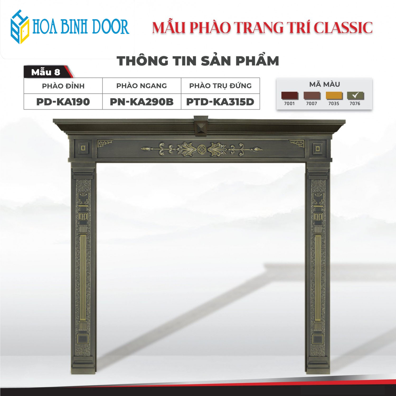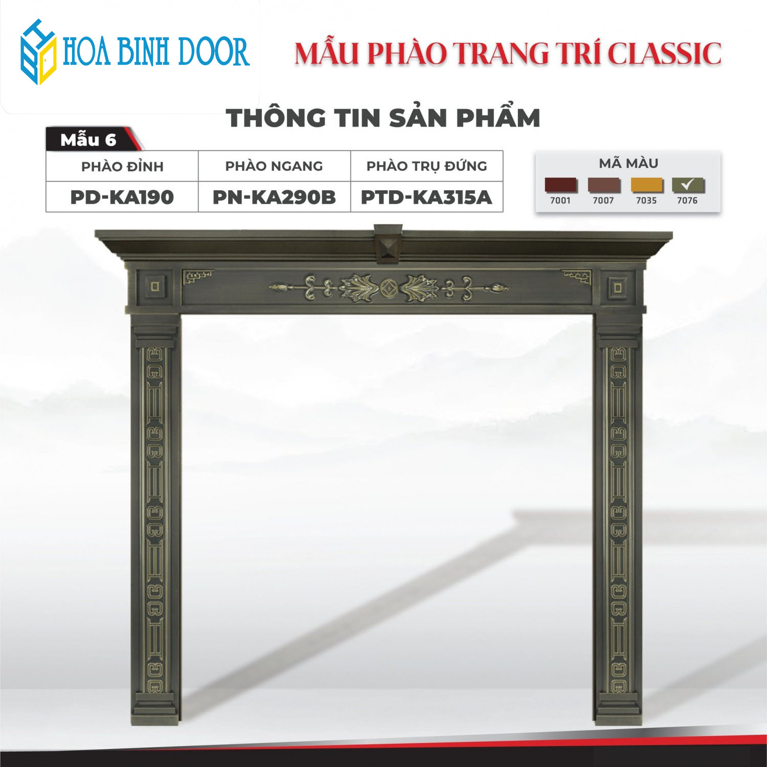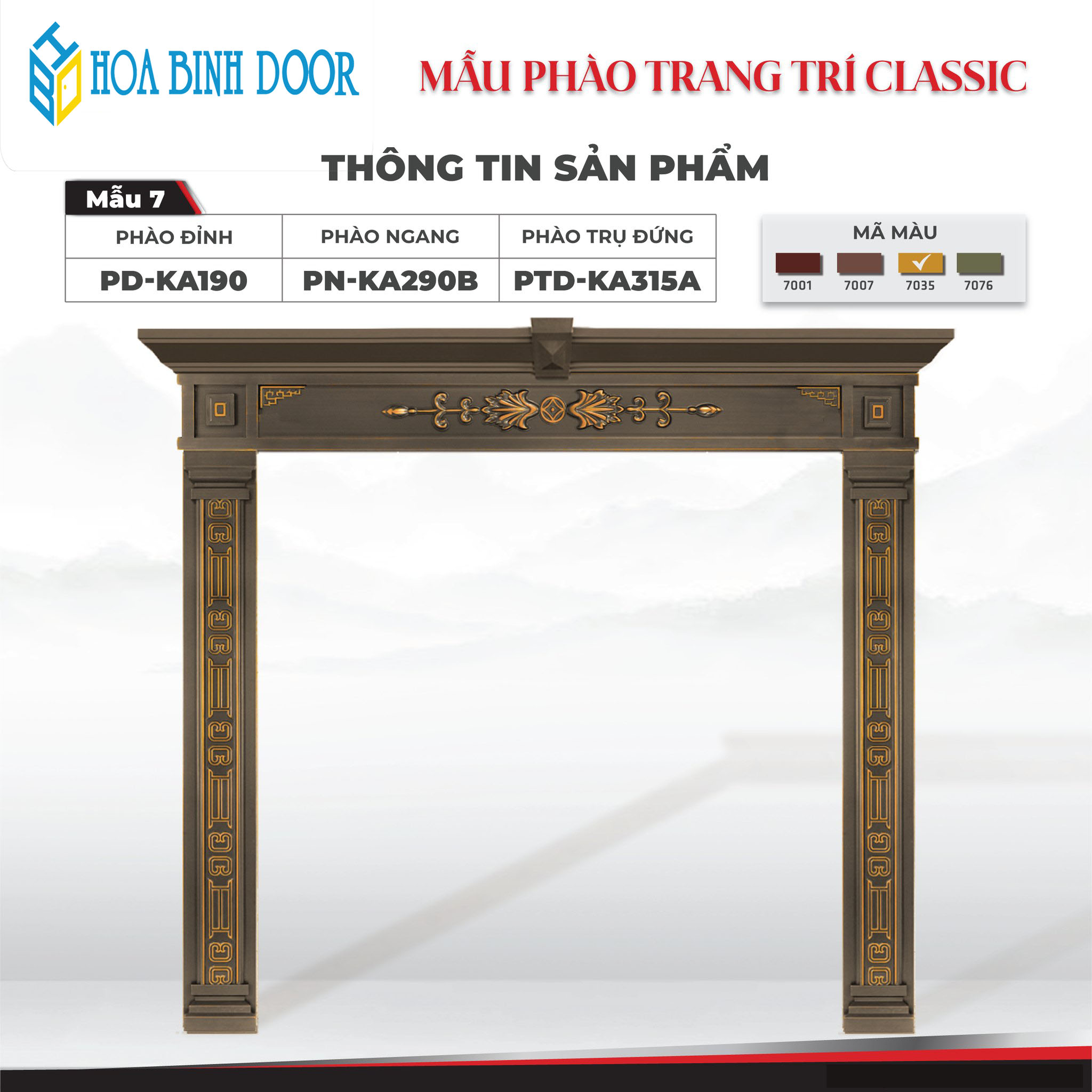 Với thiết kế tỉ mỉ, tinh tế và đậm chất cổ điển, mẫu phào trụ trang trí Classic không chỉ tôn lên vẻ đẹp sang trọng cho bộ cửa thép classic mà còn thể hiện đẳng cấp thẩm mỹ của gia chủ. Sản phẩm được hoàn thiện với nhiều mã màu lựa chọn, phù hợp với nhiều phong cách nội thất khác nhau. Hoabinhdoor cam kết mang đến giải pháp trang trí hoàn hảo, góp phần nâng tầm không gian sống của bạn. Liên hệ ngay với chúng tôi để được tư vấn và đặt hàng nhanh chóng!
