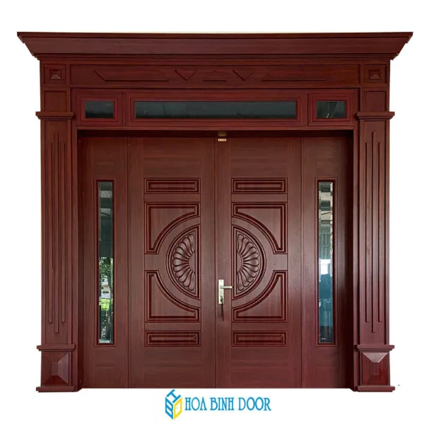 Cửa thép vân gỗ 4 cánh lệch màu vân gỗ cẩm lai