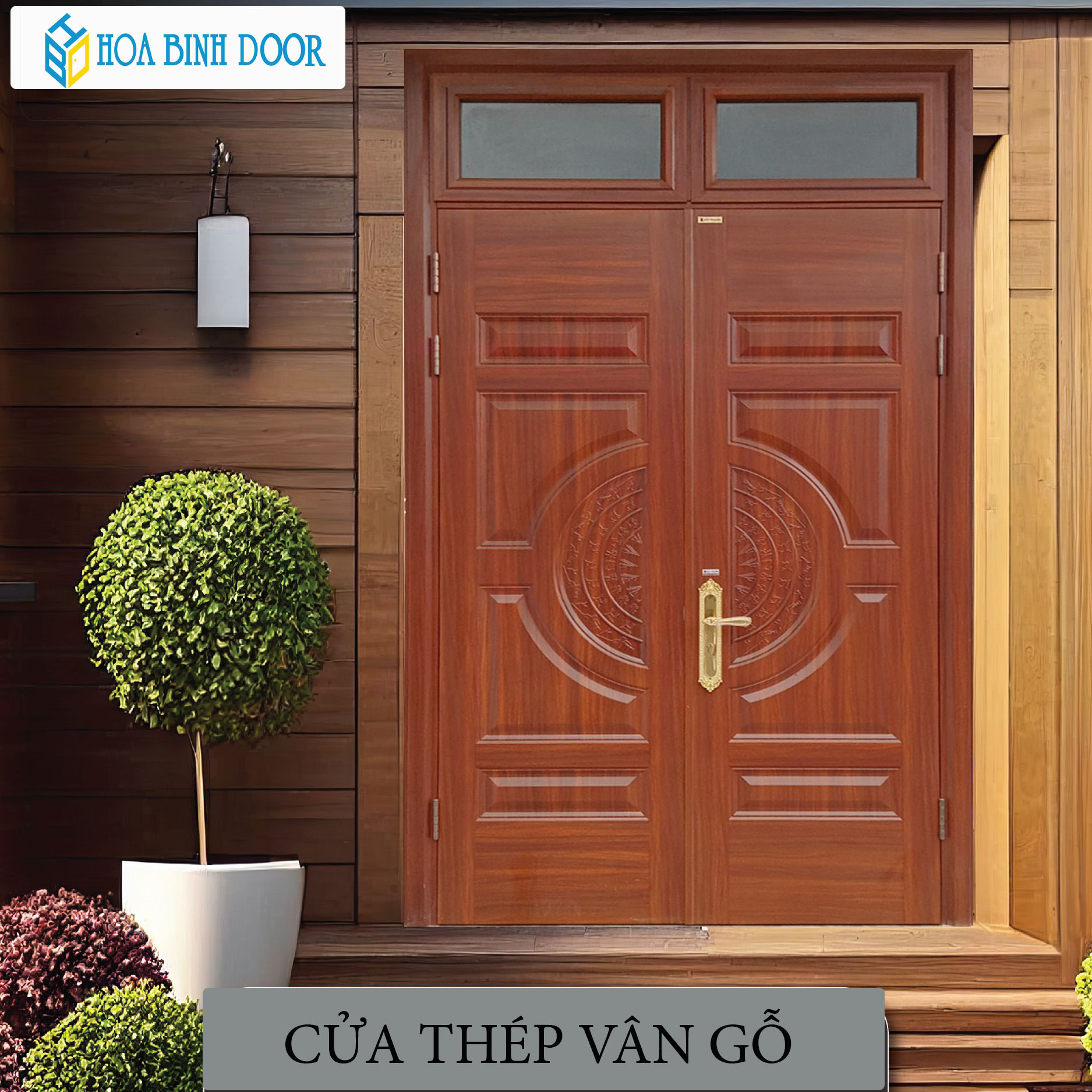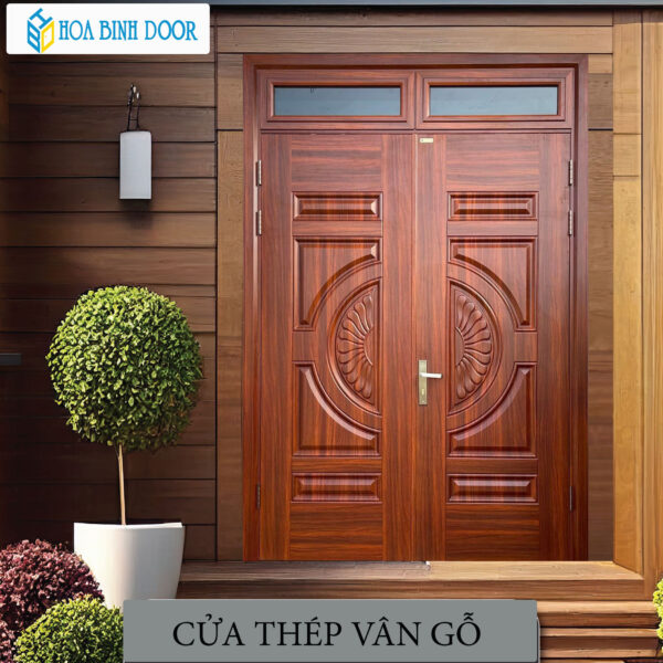 - Những sản phẩm cửa thép vân gỗ của Hoabinhdoor Việt Nam sản phẩm luôn đa dạng về màu sắc, kiểu dáng, mẫu mã với mẫu cửa một cánh, cửa thép vân gỗ hai cánh, cửa thép bốn cánh, cửa Dluxe, cửa huỳnh trống đồng…. Qua đó đáp ứng mọi nhu cầu về cửa bên trong cho mỗi công trình của các gia đình Việt.