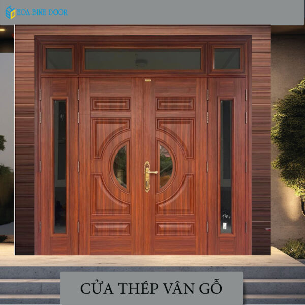 Tên sản phẩm:  Cửa thép vân gỗ 4 cánh lệch